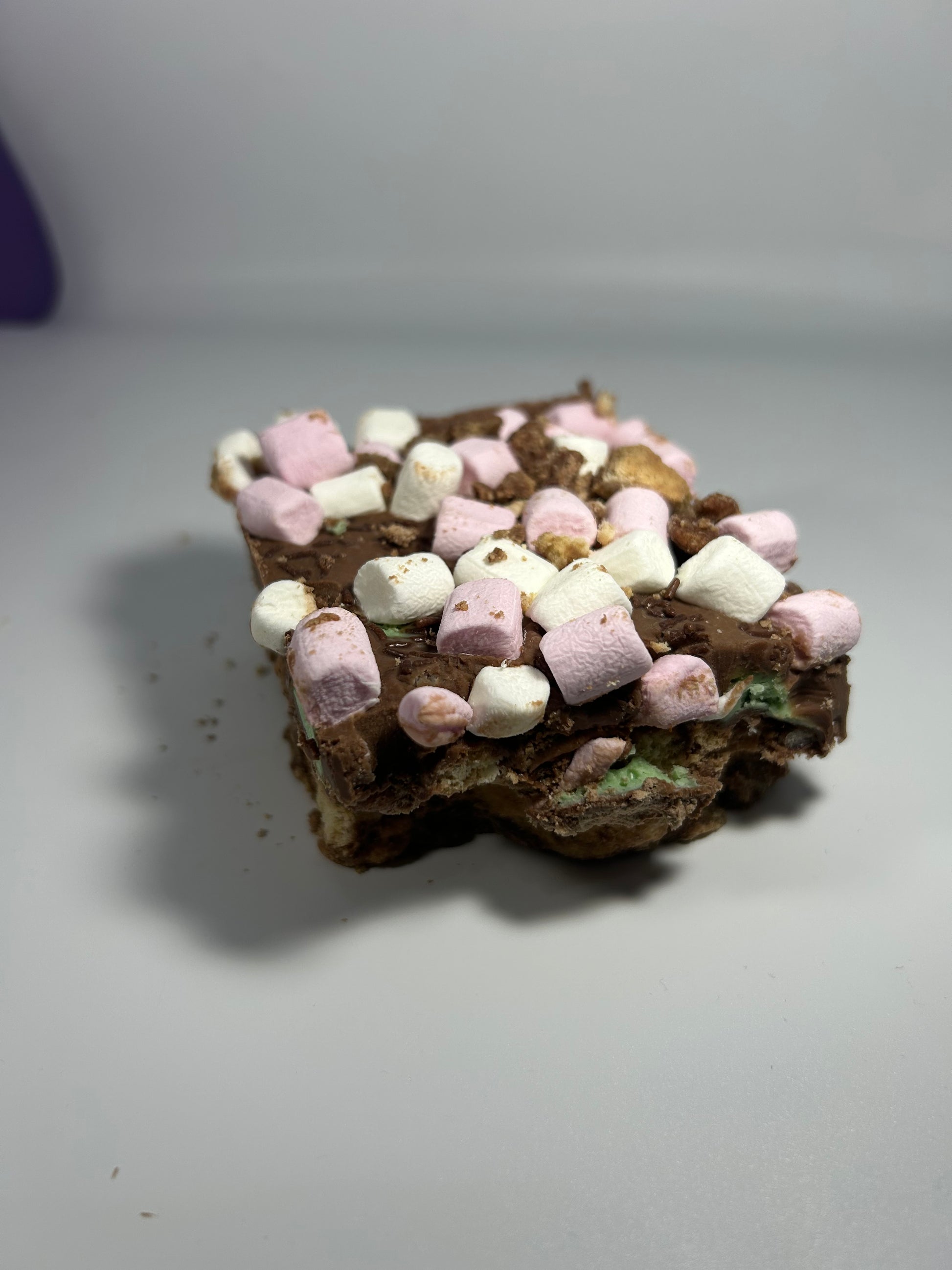 Our famous Rocky Road to ruin! A generous slab of biscuit & chocolate mix, filled with marshmallows & the filling of the week! Topped with more marshmallows. Extremely indulgent, and extremely moreish!