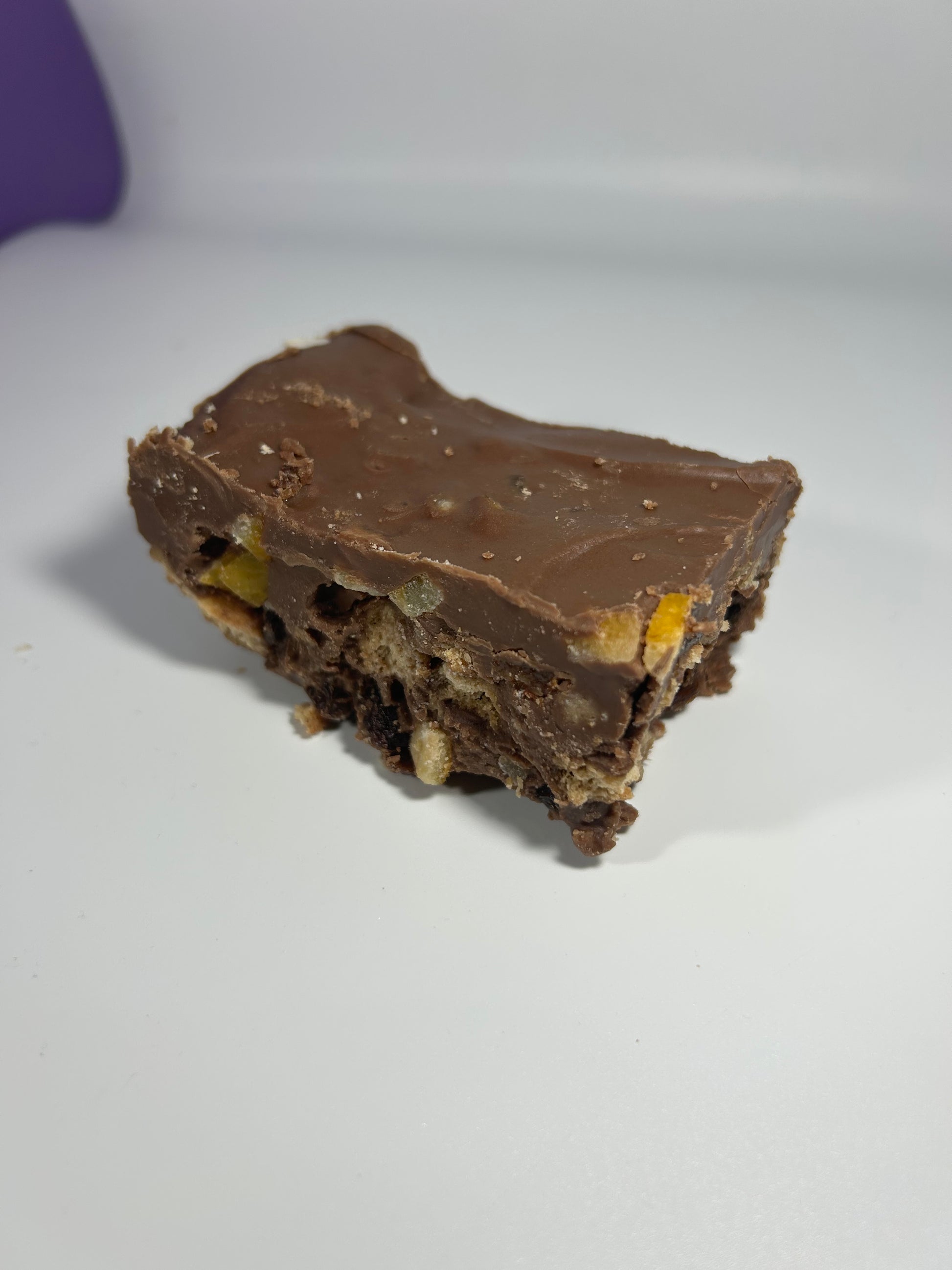 Best friend to our Rocky Road, our tiffin slab is filled with broken digestive biscuits, raisins, mixed peel & milk chocolate. A proper treat to accompany a brew!